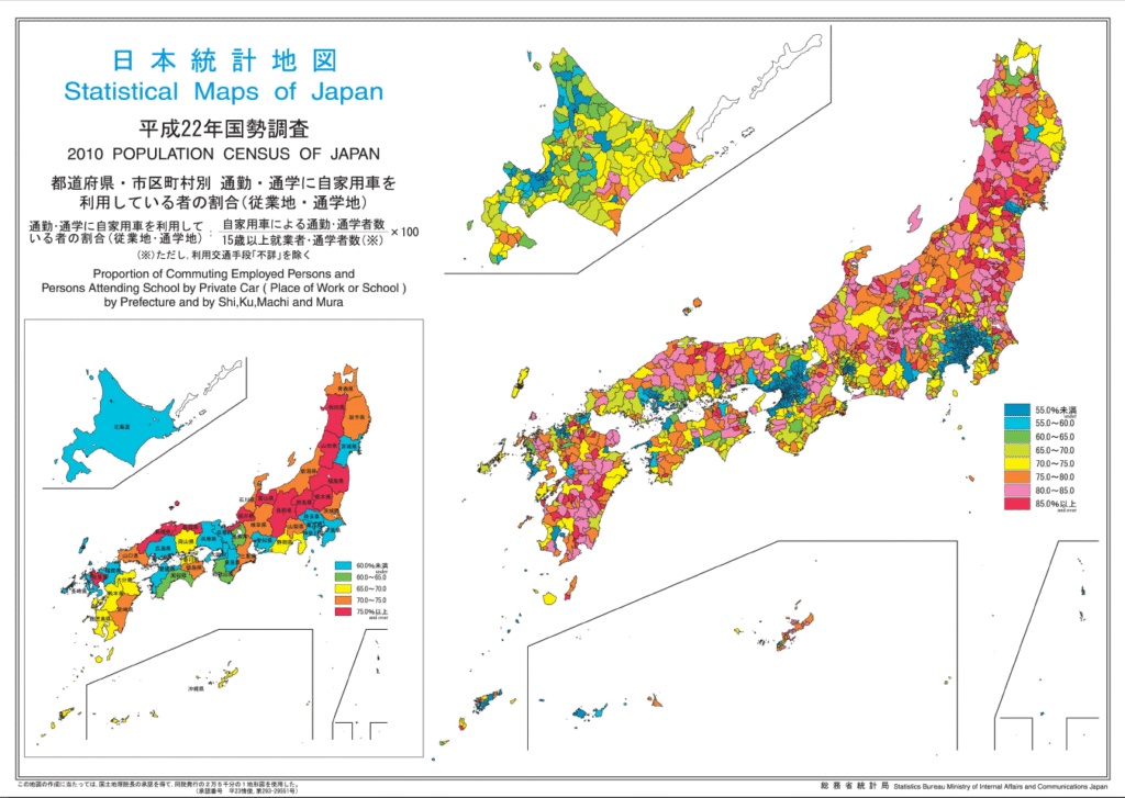 少し古いデータですが平成22年国勢調査によると、15歳以上の就業者・通学者のうち自家用車で通勤通学している人が60%以上を占める都道府県は47都道府県中32県ありました。